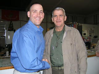 I got up to meet LtCol North after he landed and had made his way to the waiting area where he would stay until he could get a flight to Iraq. This means that I was meeting the guy after about a 14 hour flight and an hour or so truck ride. At this point he is in a big tent just like every other Soldier, Airman, Sailor and Marine that comes here. There is no VIP room, and after meeting the guy I don't think he'd go to one if there was one. Nobody should be excited or in a good mood after all that, but he was!