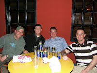 Here is a pic of the guys I met up with. They helped me celebrate my birthday in style, with three beers! The two guys with glasses are realy up in the middle of nowhere. They live in containers that have been turned into rooms. They have to walk down the street to get to a latrine. They have to shut the water off while showering and if they take to long, they get banned from showering for a few days because water is rationed up there. Yeah, really. They make me happy to be me. Anyhow. It was cool to have somebody to hang out with.